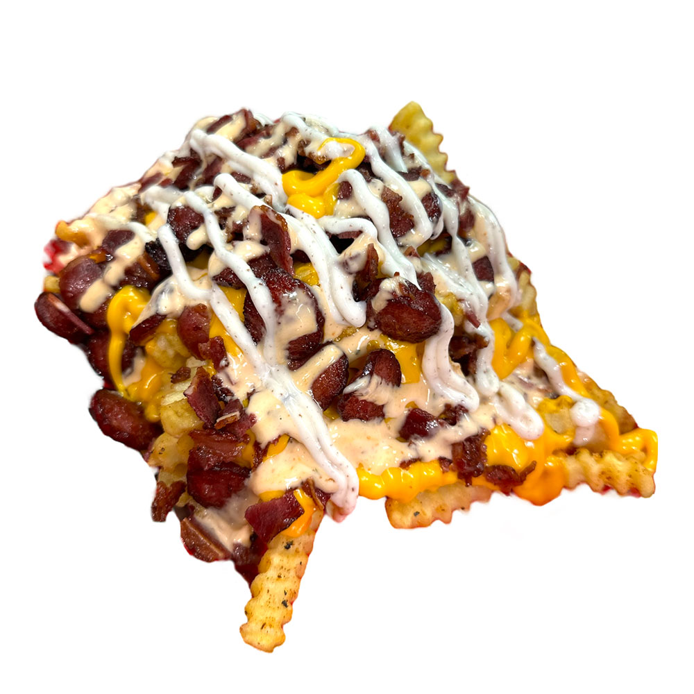 Chopped beef sausage with beef bacon, cheddar cheese, truffle lime aioli & sriracha ranch